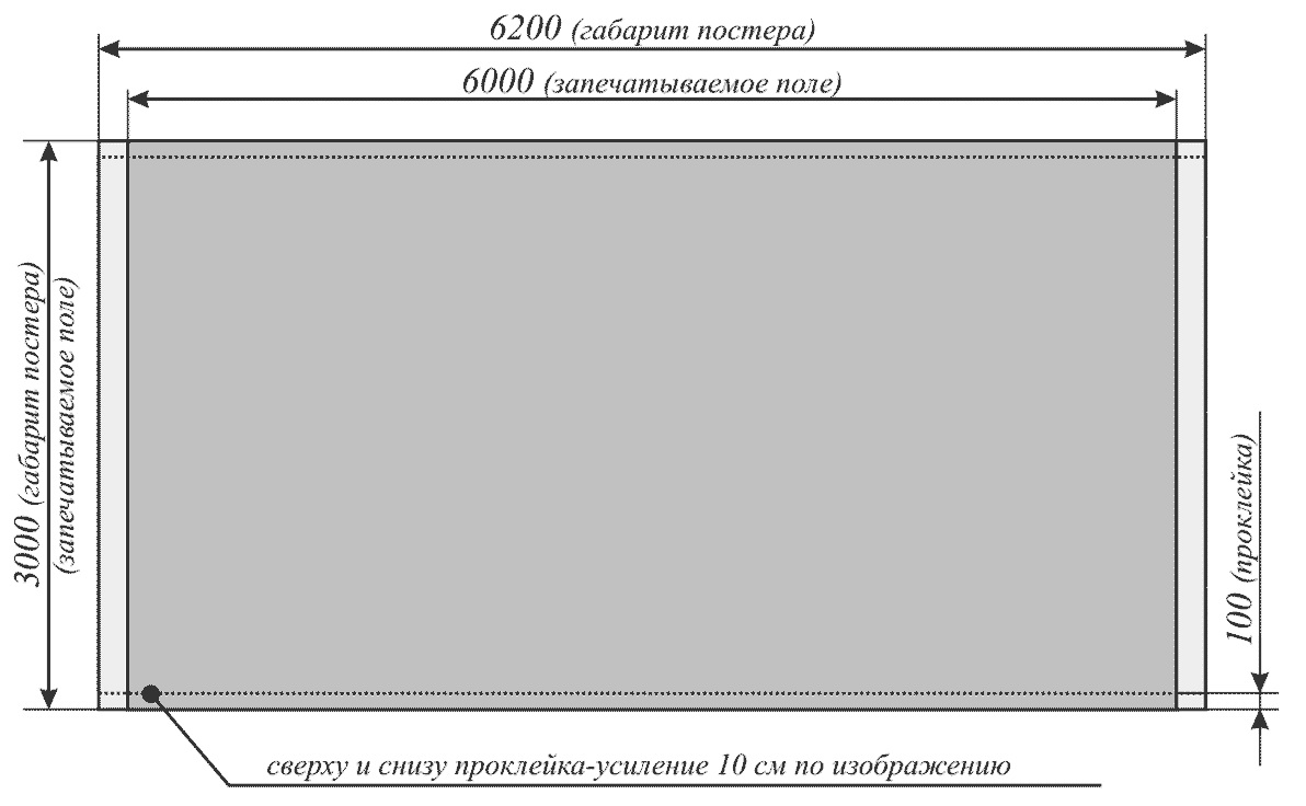4. Размер полотна – 6200х3000 мм. Запечатываемое поле (фон, картинка) – 6100х3000 мм. ПРОКЛЕИВАТЬ НЕ ОБЯЗАТЕЛЬНО!!!